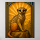 Celebre la majestuosidad silenciosa de la naturaleza con esta estilizada huella de arte de la vida silvestre que incluye un merkat sentado orgullosamente en el centro de una ráfaga de sol radiante. El ilustracion, de líneas audaces y formas geométricas, se inspira en la estética Art Decó y en la vidriera, combinando encanto natural con elegancia arquitectónica. La postura y la mirada delantera del meerkat evocan temas de vigilancia y fuerza silenciosa, mientras que los motivos de las plantas giratorias y una rica paleta de oro, verdes y azules añaden profundidad y estilo decorativo. Enmarcada con un borde simétrico, esta pieza es perfecta para interiores eclécticos, decoración de inspiración natural, o como un regalo único para los amantes de los animales y los amantes del diseño.