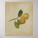 Esta elegante obra de arte de estilo vintage cuenta con una rama de pera amarilla dibujada a mano con hojas verdes vibrantes en un ambiente rústico y envejecido. Los tonos cálidos y el diseño de texturas evocan el encanto eterno. Este ilustracion es ideal para una casa de campo, con una decoración chic y sobria, o para proyectos de temática rústica.