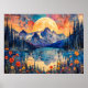 Póster Ilustracion de acuarela abstracta sobre luna llena
