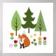 Póster Ilustracion de árboles de flores Fox de estilo esc