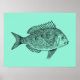 Un ilustracion de tinta negra vintage, científico y detallado, de un pez oceánico con un fondo azul acuático personalizable. Este poster de pescado se adaptaría a cualquier casa u oficina y sería un regalo perfecto para cualquier amante del pescado o aficionado a la pesca.