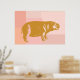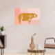 Póster Ilustración de hipopótamo lindo en rosa y dorado