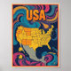 Póster ILUSTRACION de mapa de EE.UU.