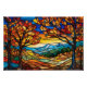 Póster Ilustracion de vidrio manchado de paisaje otoñal