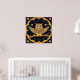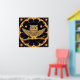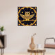 Ilustracion estilizado de una lechuza colgada en una rama rodeada de motivos dorados y azules, que evoca un ambiente mágico y místico, ideal para la decoración o el arte.