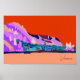 Póster Ilustracion italiano Sunset Varenna Lake Como