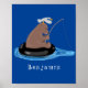 Este oso adorable está pescando desde un tubo interior de auto con una gaviota que da consejos sobre dónde atrapar el mejor pez. Dibujado en un divertido estilo de ilustracion personalizado.