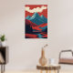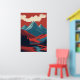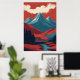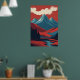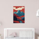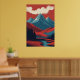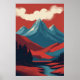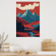 Paisaje montañoso Red Blue Retro Ilustracion Wall Art Poster para la impresión.
