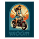 Póster Ilustracion vintage - Chica de motociclismo retro
