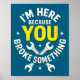 Póster I'm Here Because You Broke Soing - Funny Mechanic