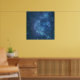 Un ilustracion gráfico del espacio en tonos azules oscuros y claros y morados polvorientos. Una representación artística de la vastedad del espacio con estrellas, nubes, nebulosas y galaxias brillando e iluminando los extremos del espacio exterior con una atmósfera de ensueño.
