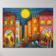 Una colorida escena nocturna romántica de la bella Venecia con luna llena de la popular artista Lisa Lorenz. Ahora disponible como poster, lienzo e impresión de arte fino