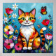 Póster Impasto Cat, Flowers & Butterfly