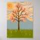Transform your room with the vibrant energy of this Post-Impressionist-inspired masterpiece. This artwork features a slender, blossoming cherry tree standing tall amidst a lush green meadow, set against a mesmerizing sky of swirling golden sunbeams and soft peach clouds.