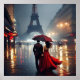 Impresionismo Torre Eiffel Francia y boulevard con pareja en la lluvia con paraguas