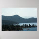 Una fotografía de las montañas cubiertas por pinos que rodean el entorno llega a su fin en el lago Tahoe.