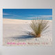 La imagen capta un sereno paisaje del desierto con dunas de arena blanca bajo un cielo azul claro. En primer plano, se ha colocado un grupo de plantas de yuca desérticas verdes que proyectan una gran sombra sobre la arena rota. Las dunas se extienden a lo lejos, creando una sensación de vastedad y tranquilidad. El cielo es un azul brillante con espíritus de nubes blancas.