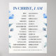 Celebrate your true identity in Christ with this beautifully designed Christian poster, featuring powerful affirmations and corresponding Bible verses. Centered around the declaration “In Christ, I Am,” this artwork highlights who God says you are — loved, chosen, forgiven, redeemed, free, and more — all rooted in Scripture.