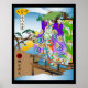 Este vibrante y llamativo arte mural presenta una figura bellamente estilizada adornada con ropa japonesa tradicional, de pie elegante en un puente. El personaje, captado por arte de magia con un toque animalista, tiene un gran gorra arbolado que contribuye a una estética encantadora y lúdica. El paisaje de fondo es muy tranquilo, con una vegetación exuberante y una puesta de sol pintoresca, que le confieren un tono sereno y dinámico. Los intrincados patrones y los colores llamativos de la ropa evocan un sentido de patrimonio cultural y de arte. Ideal para añadir un toque de elegancia y capricho a cualquier espacio, esta obra de arte celebra la fusión de la naturaleza y la cultura tradicional japonesa. Esta pieza equilibra magistralmente los elementos artísticos tradicionales japoneses con la interpretación moderna y lúdica. Los patrones detallados, la composición cuidadosa y los gradientes de color ricos demuestran una hábil artesanía, al tiempo que mantienen el capricho de su sujeto felino. El conjunto crea una pieza sofisticada que se sumaría a los espacios contemporáneos y tradicionales