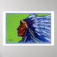 El antiguo jefe indio norteamericano lleva un punto muerto desde su corazón, viendo la belleza a su alrededor mientras se le desafía con el caos, ve la paz. El azul indio absorbe las pruebas del mundo de las máquinas con una mirada que transporta la vida.