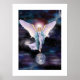 Arte visionario de Daniel B. Holeman Angel Indriel sobre la tierra en el espacio con don de la Verdad en mano