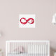 Símbolo infinito de flujo continuo de vino tinto vertiendo en vidrio de vidrio sobre fondo blanco.