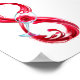 Símbolo infinito de flujo continuo de vino tinto vertiendo en vidrio de vidrio sobre fondo blanco.