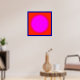 Una bola rosa relativamente sin bordes sobre un fondo rojo da la percepción de movimientos inquietos y contracción.