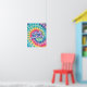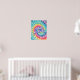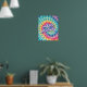 Un poster de arte mural groovy con las palabras "radiar positividad" en un fondo de tintes espirales. Un diseño de moda inspirador, moderno e hippie.