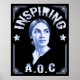 Dibujo de Alexandria Ocasio Cortez en azul, con texto "Inspirando AOC". Camisetas, sudores, artículos de regalo de novedad.
