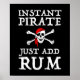 Instant Pirate – Just Add Rum. Funny quote pirate design is a great gift for a pirate lover who loves drinking rum. Perfect for Talk Like A Pirate Day or wear as a pirate costume on Halloween or at a party! If you love to drink rum and rum cocktails, you might be why the rum is gone! This funny saying pirate accessory has vintage text and a pirate skull graphic.