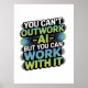 "Este diseño de Inteligencia Artificial presenta el audaz eslogan ‘No se puede superar la IA pero se puede trabajar con ella’ en tipografía futurista. Perfecto para entusiastas de la tecnología, innovadores y programadores, este trabajo de IA destaca la colaboración con la tecnología y el futuro de la creatividad".
