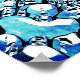 A mesmerizing pattern of abstract shapes in various shades of blue and black creates a striking visual effect. The composition is filled with intricate details and rounded forms that draw the eye across the image.