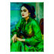 Retrato generado por IA de una mujer introspectiva con un vestido verde