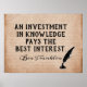 Póster Invertir en el conocimiento - comillas Ben Frankli