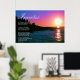 Invictus ~ Poema Inspirador. Hermosa imagen de una puesta de sol sobre el océano, con el maravilloso poema de coraje "Invictus" de William Ernest Henry. William Ernest Henley padeció la dolorosa condición de la tuberculosis ósea. Escribió el conmovedor y inspirador poema "Invictus" desde su cama de hospital:~ De la noche que me cubre, Negro como nido de poste a poste, doy las gracias a todos los dioses por mi alma inconquistable. En la caída de circunstancias no he ganado ni llorado en voz alta. Bajo los ruidos de la casualidad Mi cabeza es sangrienta, pero no doblada. Más allá de este lugar de ira y de lágrimas se cierne el horror de la sombra, y sin embargo la amenaza de los años encuentra y me encontrará sin miedo. No importa qué tan estrecho sea el portón, qué tan cargado de castigos el pergamino, soy el amo de mi destino: soy el capitán de mi alma. **IMPORTANTE! Si recorta este poster de su tamaño original, asegúrese de que TODO EL TEXTO está visible antes de colocar su orden. LO QUE VES EN TU PANTALLA ES LO QUE OBTENDRÁS.