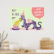 Divertido diseño de dragón de cumpleaños "Get Fired Up" con un tema de color rosa y morado. Editar texto para agregar el nombre del chica de cumpleaños.