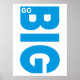 Un diseño moderno de tipografía de las palabras motivacionales Go Big con letras blancas y azules. Puede cambiar el color de fondo al color que desee. Haga clic en el vínculo Editar diseño, que se muestra bajo la descripción del elemento a la derecha y, a continuación, haga clic en el icono Fondo de la izquierda para elegir el color del personalizado.
