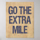 Vaya la cita inspiradora Extra Mile en la tipografía de tipo de letra gris azul oscuro en un fondo de pergamino de papel antiguo oscuro. Una gran cita favorita que puede aplicarse a cualquier cosa en la vida, desde la motivación de la aptitud hasta el servicio al cliente en un negocio, este poster es un recordatorio para estar a la altura del reto y luego darle más.