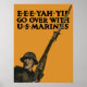 Este vintage poster de la Primera Guerra Mundial muestra a un soldado cargando contra la batalla con su rifle. Dice: "E-E-E-YAH-YIP VAN CON MARINES". Celebre la historia marina y de la guerra mundial con este producto vintage de poster de guerra restaurado digitalmente de The War Is Hell Store. ¿Quieres más productos militares y de historia? Desproteger