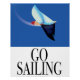 Go Sailing vintage afiche de viaje náutico estilo años 80 de un barco de vela en el océano.