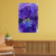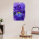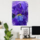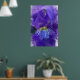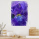 acuarela poster con flor de iris de jardín florecido, pétalos grandes pintados completamente abiertos y decorativos. La bonita corola está pintada en tonos violeta e índigo, como una acuarela natural y adornada con pequeños motivos o deportes amarillos y blancos. El largo y florido tallo amarillo decora el centro de la corola como en una obra de arte. La paleta de colores es asombrosa, combinando varios matices de manchas violetas, blancas y amarillas aquí y allá, así como una resistencia amarilla.
