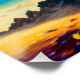 Una hermosa pintura digital de una exuberante isla verde en medio del océano. La isla está cubierta de árboles frondosos y flores, y el agua es azul claro. Un pequeño barco está anclado en la bahía y algunos se relajan en la playa. Este cuadro es perfecto para quien quiera escapar a un paraíso tropical.