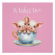 Cute "It takes Two" Teacup Piglets Design Poster featuring, two cute piglets in a teacup set on a plain pink background.