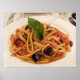 Póster Italia, Positano. Platos de pasta y berenjenas.
