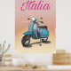 Italia Scooter travel poster - Italy retro travel poster.