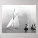 Columbia lidera Shamrock en 1899. En el fondo se pueden ver cuatro chorros de vapor.