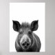 Póster Jabalí Cerdo Bosque Retrato moderno blanco negro
