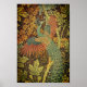 Un hermoso jacquard de época victoriana con un pavo real y hojas de roble de diseño floral. En ricos colores de verde azulado, coral, dorado y ámbar. Muy elegante.