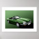 ilustracion poster de un Jaguar XJ-S verde oscuro convertible. Diseñada e ilustrada por mí misma, esta imagen también está disponible en rojo oscuro y azul, así como en forma de coupe. ¡Esta impresión es genial para cualquier propietario de Jag XJ-S!
